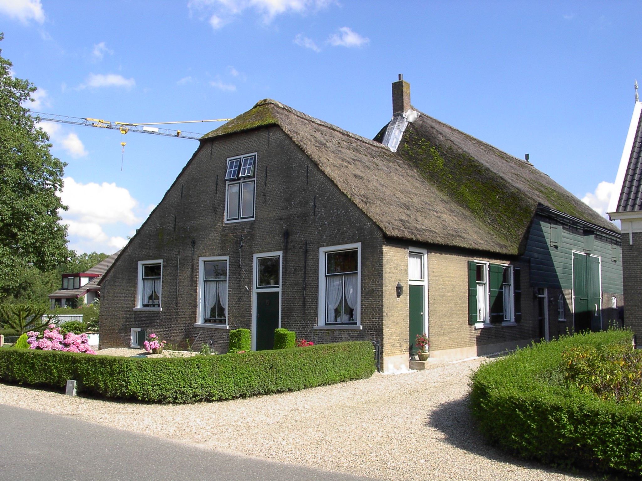 huidige versie11 apr 2012 14:48Miniatuurafbeelding voor de versie van 11 apr 2012 om 14:482.048 × 1.536 (798 kB)Beheerder (overleg | bijdragen)Als het dak van de stal hoger is dan het dak van het woonhuis, is er een glooiende overgang tussen beide nokken. Boerderij te Groot-Ammers (ZH) (Bron: Fotoarchief Bureau Helsdingen, Vianen)