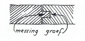Houten delen kunnen zijn voorzien van een messing en groef, ook wel G&G-delen genoemd (geschaafd en geploegd). Dit is een verbinding over de volle lengte van een houten deel. De ene zijde van het houten deel is voorzien van een messing, wat een soort tand is. De andere zijde is voorzien van een groef waar de messing van een ander deel in past. De sluiting tussen deze twee te verbinden elementen is vaak zeer krap en er moet dan ook veel kracht worden uitgeoefend om deze verbinding tot stand te krijgen. Op deze manier worden de losse delen één geheel, wat vooral als dakbeschot en vloer wenselijk is.