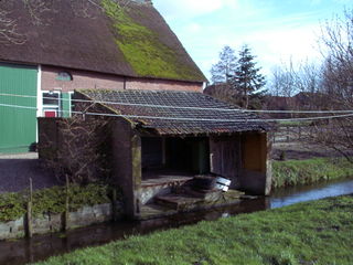 Vrijstaand boenhok bij de sloot, nog geheel in originele staat. Goudriaan (ZH) (Bron: Fotoarchief Bureau Helsdingen, Vianen)
