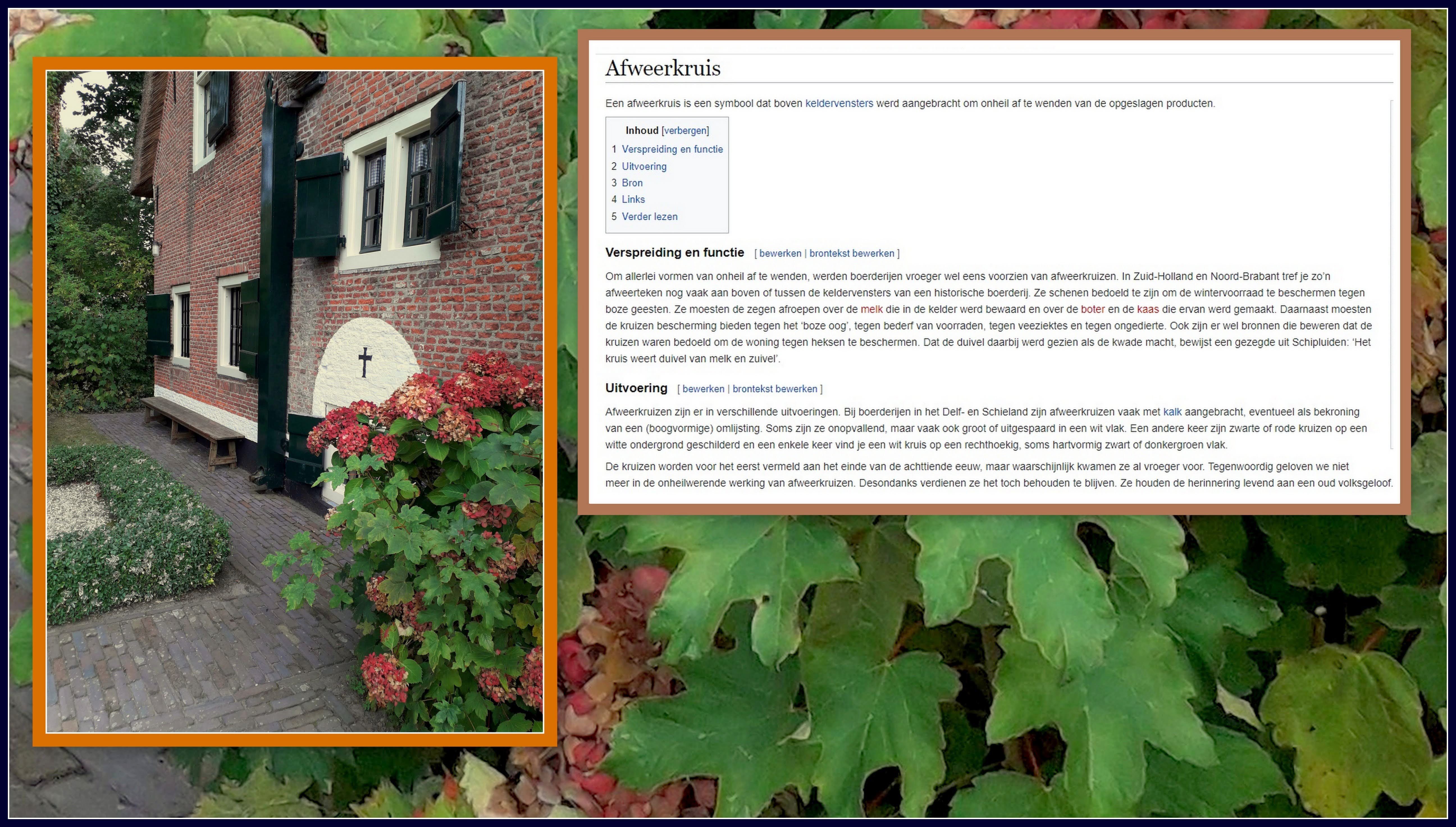 1,69 MB Jan Dijkstra Aan de Willemshoeve in Woerden zag ik dit afweerkruis maar ik wist niet de betekenis hier van, het was dus even zoeken op internet en iets gevonden. Ik heb er ook een plaatje van gemaakt en van beide een collage gemaakt. Ik wilde dit even delen omdat het een leuke wetenswaardigheid is. 1